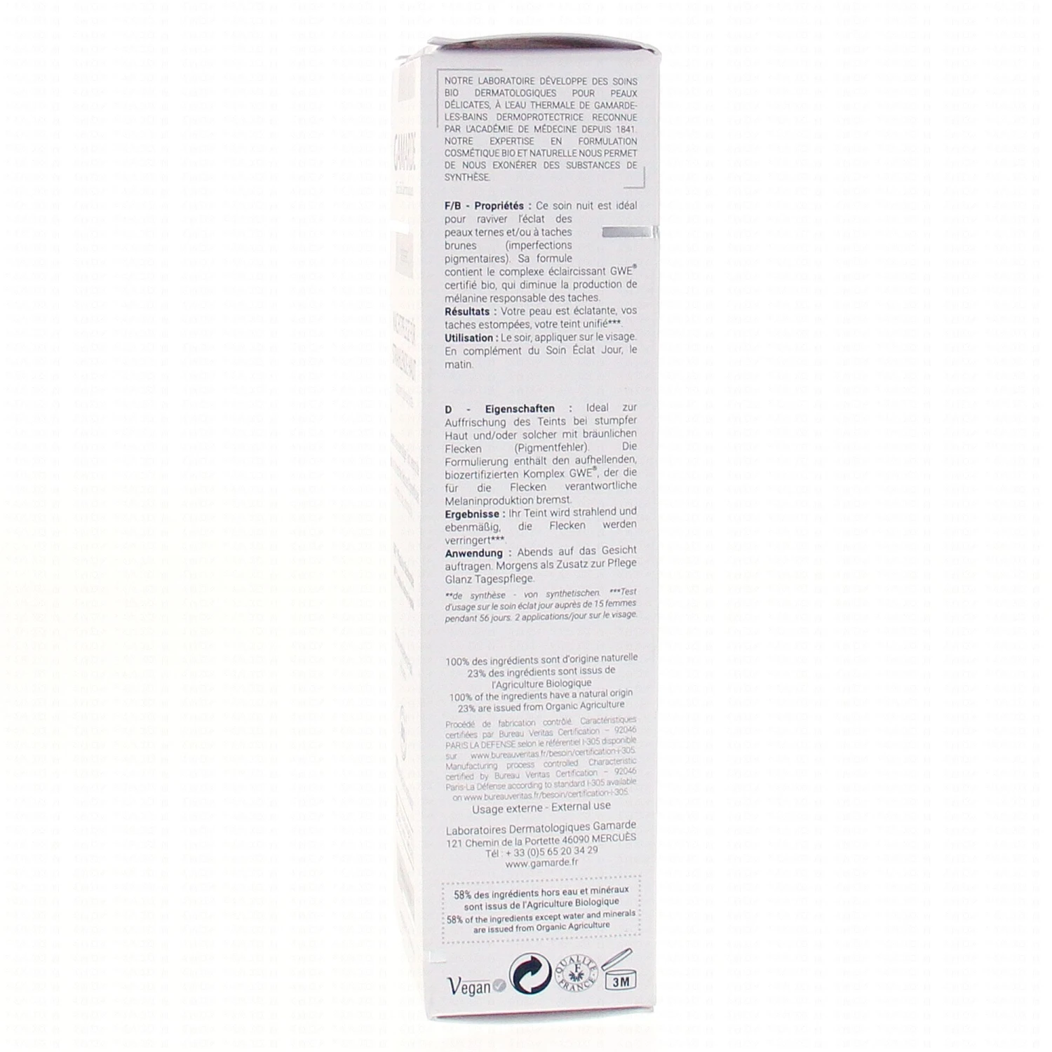 GAMARDE White Effect Soin éclat Nuit Bio Tube 40g